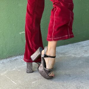 *AS-IS* 1970S FULLY GLITTER OPEN TOE PLATFORM BLOCK HEELS