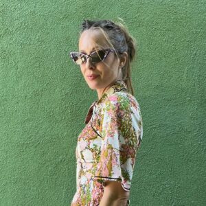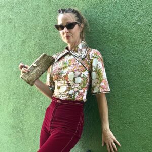CUTE! 1960S WATERCOLOR PRINT CHINOISERIE TOP PETER PAN COLLAR