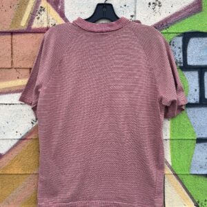 *AS-IS* 1970S TWO TONE HORIZONTAL STRIPED KNIT MOCK COLLAR SHIRT EMBROIDERED FEET CHEST LOGO
