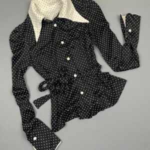 *AS-IS* AMAZING 2 TONE MINI POLKA DOT SKIRT & BUTTON DOWN DAGGER COLLARED BLOUSE SET