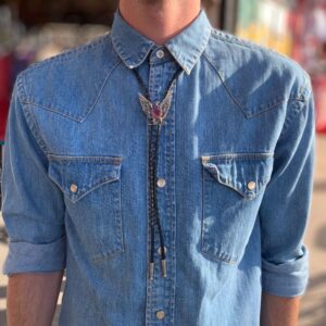 RAD! EAGLE & PINK ABALONE INLAY PENDANT DISTRESSED BLACK WOVEN LEATHER CORD BOLO TIE