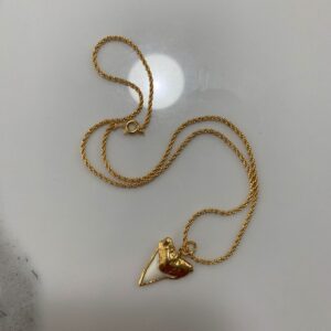 GOLD DIPPED NATURAL SHARK TOOTH NECKLACE WITH GOLD PLATED TWISTED ROPE CHAIN