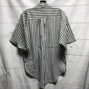 SHORT SLEEVED FUNKY KNIT STRIPED POCKET SWEATER