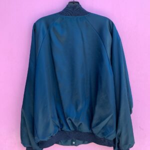 SILKY BLUE FAR EAST TOUR BOMBER JACKET W/ ZIP HOOD EMBROIDERED DRAGON
