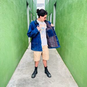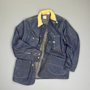 AS-IS 1960S LEE BLANKET LINED DENIM CHORE COAT JACKET CONTRAST STITCHED CORDUROY COLLAR