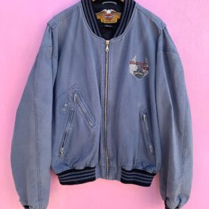 HARLEY DAVIDSON EMBROIDERED DENIM BOMBER JACKET