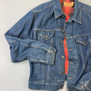 DARK WASH DENIM JACKET BUFFALO PLAID BLANKET LINING