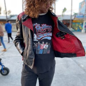 VINTAGE LEATHER MOTO JACKET W/ RED LEATHER PANELS AND COLLAR