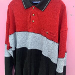 AWESOME 1980S-90S TEXTURED COLOR BLOCK QUARTER BUTTON COLLARED PULLOVER SWEATSHIRT