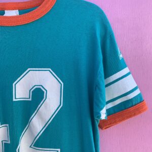*AS-IS* AWESOME #42 BRIGHT TEAL & ORANGE RIBBED COLLAR AND CUFF JERSEY T-SHIRT ELAINE