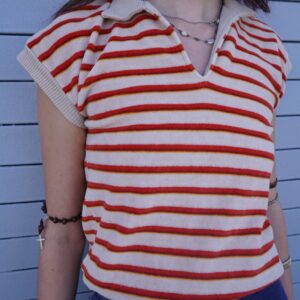 SO CUTE! STRIPED CAP SLEEVE COLLARED TOP RIBBED COLLAR & BAND