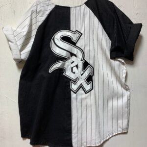 RAD DEADSTOCK 1990S 100% COTTON HALF COLOR BLOCK PINSTRIPE WHITE SOX BASEBALL TEE
