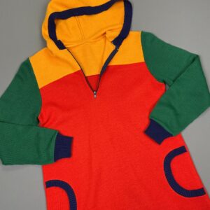 RETRO 1960S COLOR BLOCK HOODED KNIT MINI DRESS