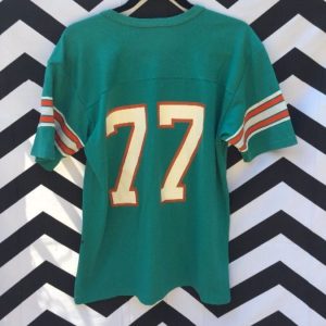 RAWLINGS FOOTBALL JERSEY T-SHIRT, MIAMI DOLPHINS #77. STRIPED SLEEVES