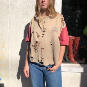 T-SHIRT DISTRESSED CROPPED HARLEY DAVIDSON 1998 TWO-TONE LAKE SHORE HOME OF THE BIG IRON WAUKEGAN, IL BUTTON COLLAR