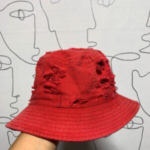 AS IS CRAZY DISTRESSED EMBROIDERED CANVAS BUCKET HAT \\LIVE ENORMOUS FOREVER\\
