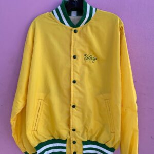 RETRO CHAINSTITCH SATIN BUTTON UP BASEBALL JACKET W/ S.W.A.T. LETTERS ON BACK AS-IS