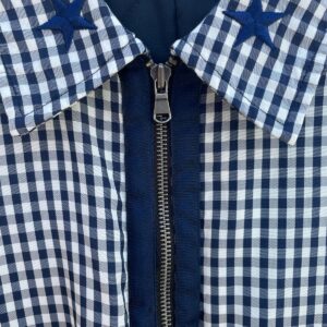 RAD! NYLON GINGHAM CHECK FULL ZIP JACKET, QUILTED INTERIOR, OPEN UNDER ARM VENTS, STAR PATCHED LAPEL