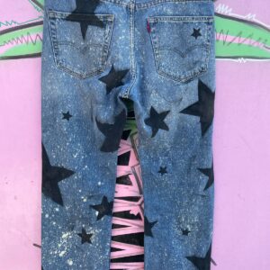 UPCYCLED STAR STENCIL ACID WASH RED TAG LEVIS 559 BOOT CUT DENIM PANTS
