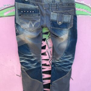 CRAZY MULTI PATCHWORK & CHUNKY ZIPPER DENIM JEANS, DESIGNED BY OKISHANA SAMOKI