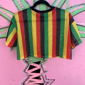 CUTE! CROPPED VERTICAL STRIPED RASTA MESH JERSEY RINGER TOP