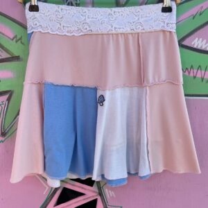 CUTE! Y2K PATCHWORK EXPOSED SEAMS LACE TRIM MINI SKIRT – MUSHROOM PATCH