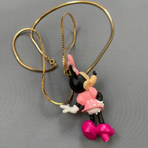 VINTAGE MINNIE MOUSE OVERSIZED TOY PENDANT ON VINTAGE HEAVY GOLD COBRA SNAKE CHAIN NECKLACE