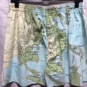 COTTON SHORTS W/ WORLD MAP PRINT & ELASTIC WAIST