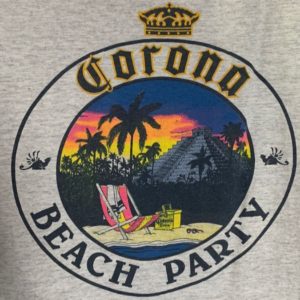 RETRO CORONA BEACH PARTY TANK TOP W/ SUN SETTING ABOVE PALM TREES PRINT