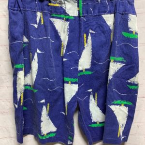 1980’S COTTON FUNKY SAILBOAT PRINT SWIM TRUNKS W/ ELASTIC WAIST