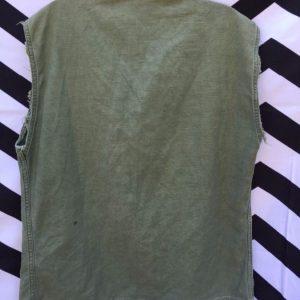 MILITARY SHIRT/VEST, COTTON, CUT OFF SLEEVE, FRONT POCKETS, VIETNAM ERA, DISTRESSED