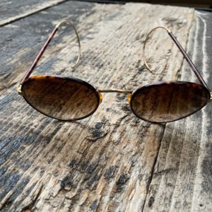 RAD DARK BLUE 1980S SUNGLASSES WITH CUSTOM DIP DYED SHEER ORANGE LENSES