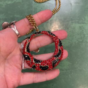 RHINESTONE ENCRUSTED PENDANT NECKLACE HEAVY GOLD CHAIN