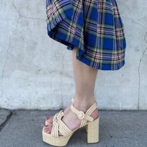 CUTE WOVEN RAFFIA PLATFORM BLOCK HEEL STRAPPY SANDAL