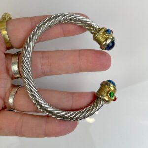 TWISTED SILVER OPEN BRACELET COLORED JEWEL ADORNMENTS