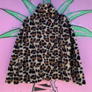 FUN! FUZZY LEOPARD PRINT PULLOVER FLEECE SWEATER