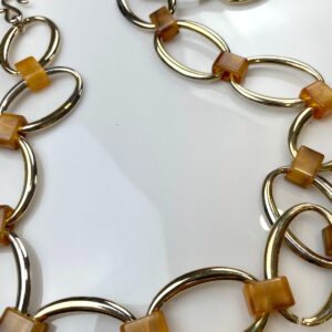 *AS-IS* RETRO HIGH POLISHED GOLD PLATED OVAL LINK BELT, IRIDESCENT ACRYLIC CONNECTORS