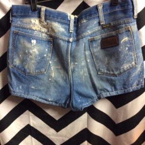 WRANGLER DENIM SHORTS – HEMMED – DISTRESSED – SPLATTER PAINT