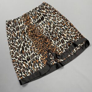 1960S! NYLON LEOPARD PRINT SLIP SKIRT BLACK RIBBON TRIM