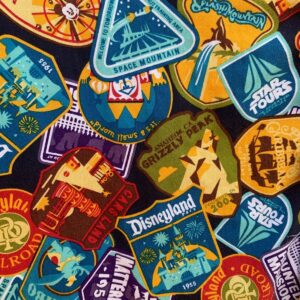 DISNEY THEMEPARK RIDE PATCHES PRINT BUTTON UP SHIRT
