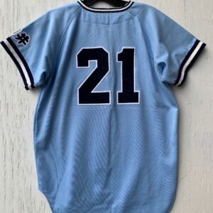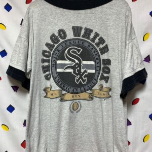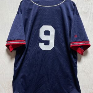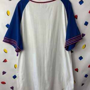 CUSTOM 1990S GEORGETOWN UNIVERSITY HOYAS 100% COTTON COLOR BLOCK PINSTRIPED BASEBALL T-SHIRT