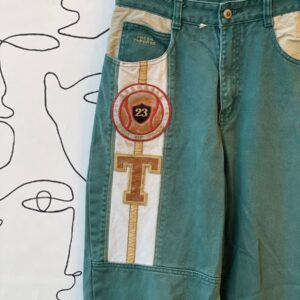 INCREDIBLE 1990S BASEBALL THEMED PATCHWORK DENIM PANTS