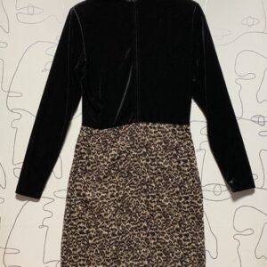 1990S LONG SLEEVE VELVET MOCK COLLAR ANIMAL PRINT DRESS
