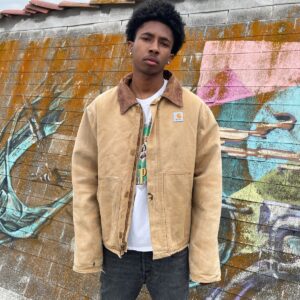 *AS-IS* DISTRESSED CLASSIC CARHARTT CHORE JACKET W/ CORDUROY COLLAR AND SATIN LINING