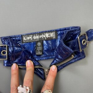 METALLIC BLUE PLEATHER ZIP FRONT BELTED HIGH COLLAR CHOKER