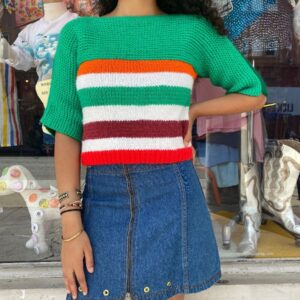 ADORABLE KNIT HORIZONTAL BLOCK STRIPE SWEATER WITH 3/4 SLEEVES