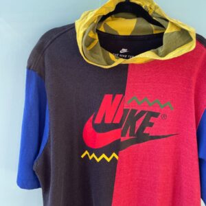 AWESOME NIKE COLORBLOCK PATCHWORK HOODED T-SHIRT W/ SCREENPRINTED LOGO