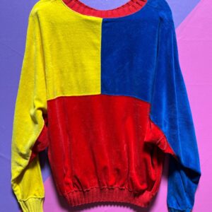 AMAZING! 1980S PRIMARY COLOR BLOCK VELOUR CREWNECK SWEATSHIRT TOP