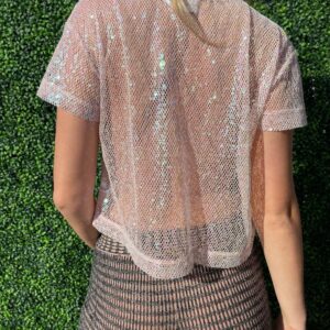 SHORT SLEEVE MESH SEQUIN TROLL TOP