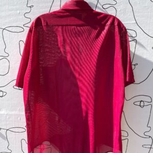 RETRO REFEREE SPORTY MESH VERTICAL STRIPED COLLARED TOP